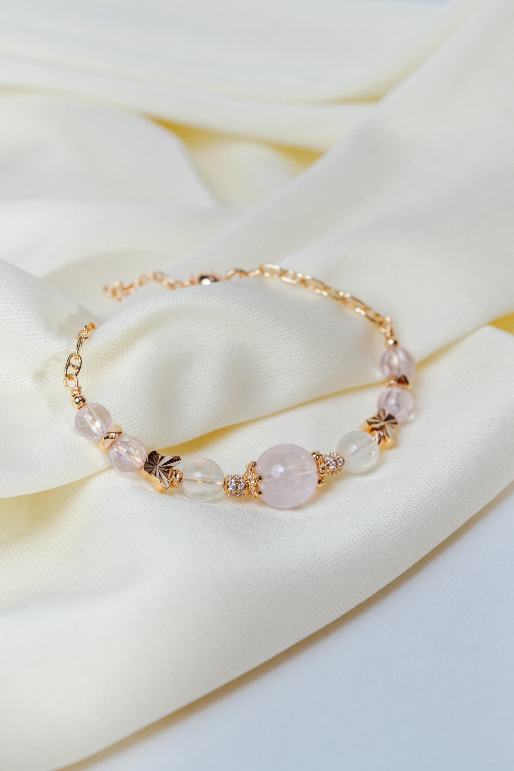 Crafted with Moonstone and Kunzite, it carries a calm, heart-soothing energy.